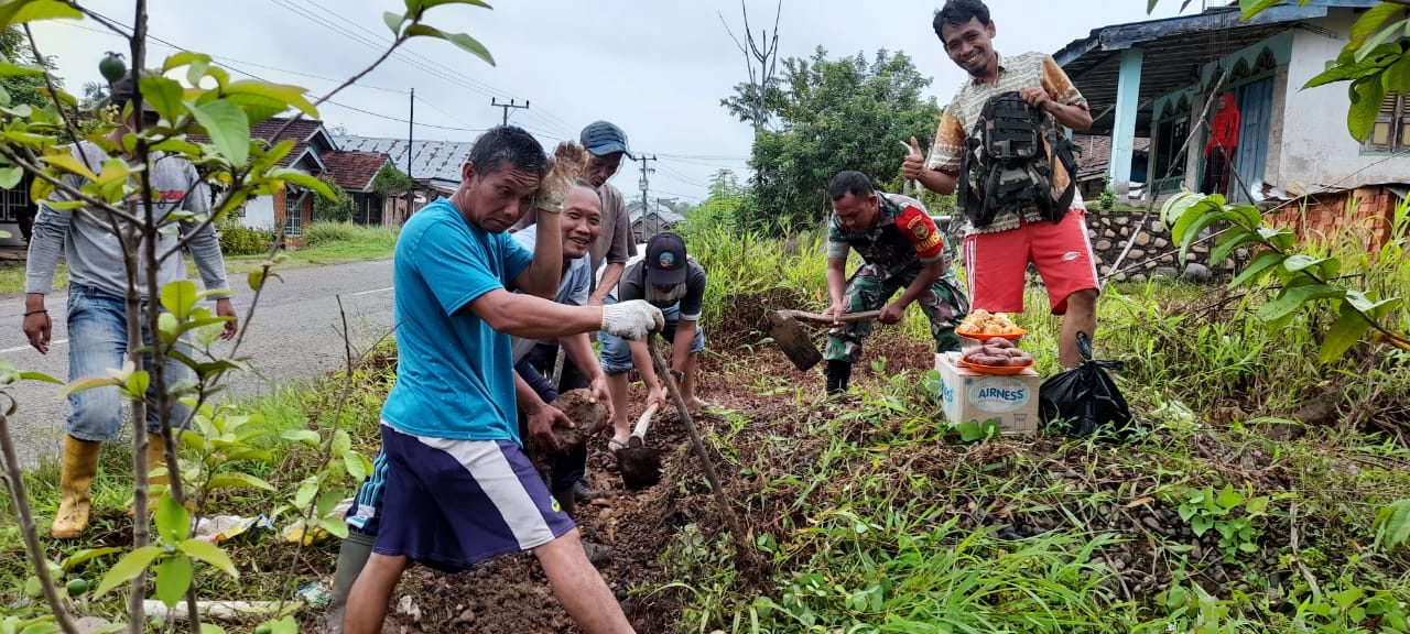 Babinsa Bersama Warga Gotong Royong Bersihkan Drainase di desa bumi agung