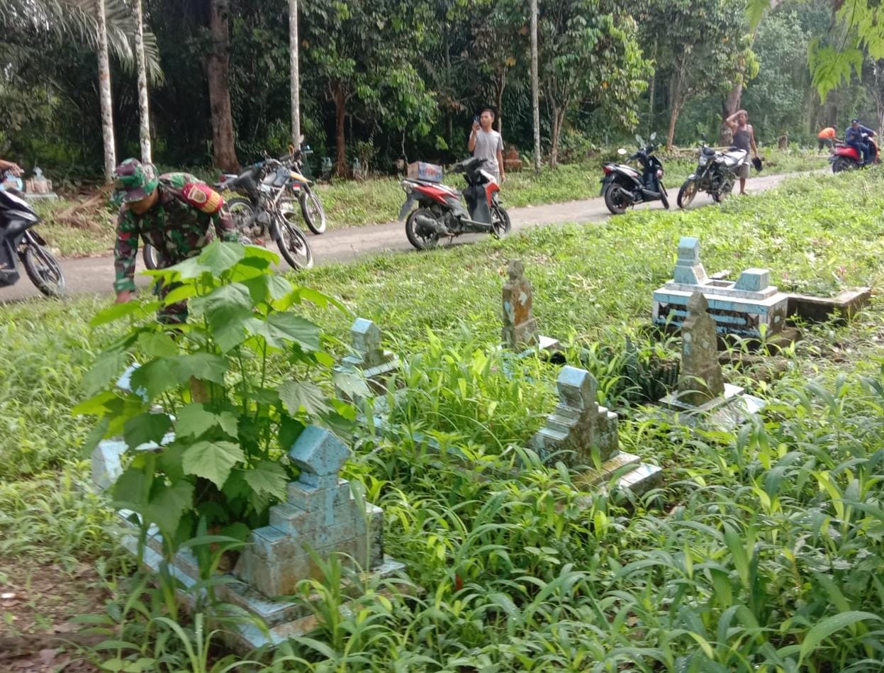 Jumat Bersih, Babinsa Koramil 406-03/Muara Rupit Bersama Warga Bersihkan Makam Umum Di Desa Lubuk Rumbai