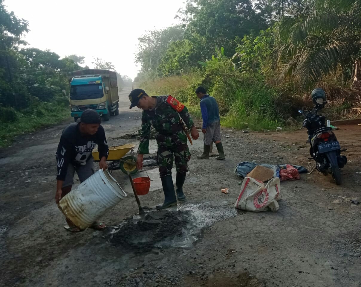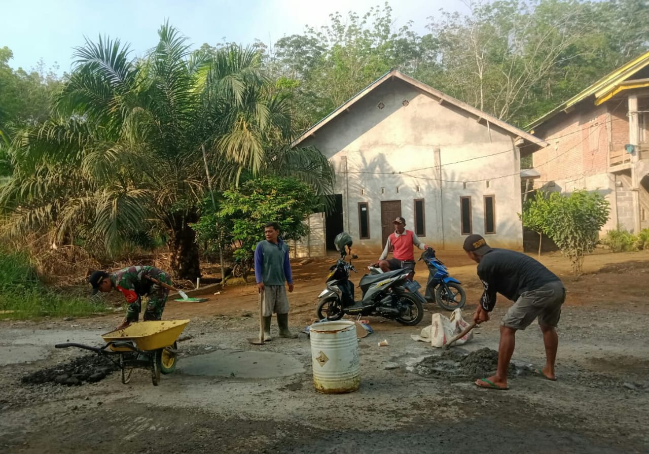 Lensa Garuda, Musi Rawas – Jalan merupakan salah satu penunjang Perekonomian Masyarakat oleh karena nya Babinsa Koramil 406-09/Terawas bersama perangkat desa dan warga bergotong royong benahi jalan yang rusak di Desa Sukorejo, Kecamatan Stl.Ulu Terawas, Kabupaten Musi Rawas. Minggu (20/11/2022).