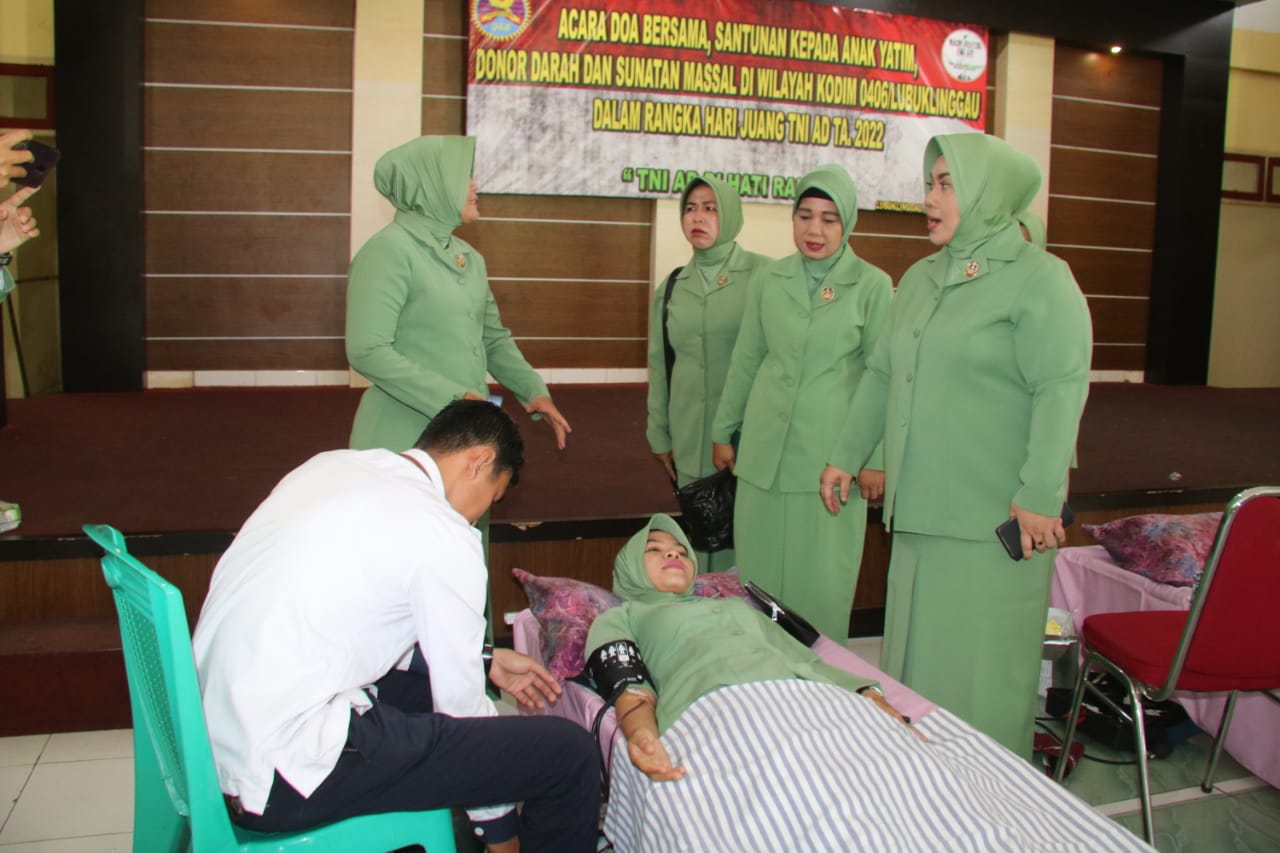 Dalam Kegiatan Donor Darah ini terlihat anggota Kodim 0406/ Lubuklinggau dan Koramil Jajaran serta ibu-ibu Persit Kartika Chandra Kirana Cabang XVII sangat antusias melaksanakan kegiatan donor darah ini.