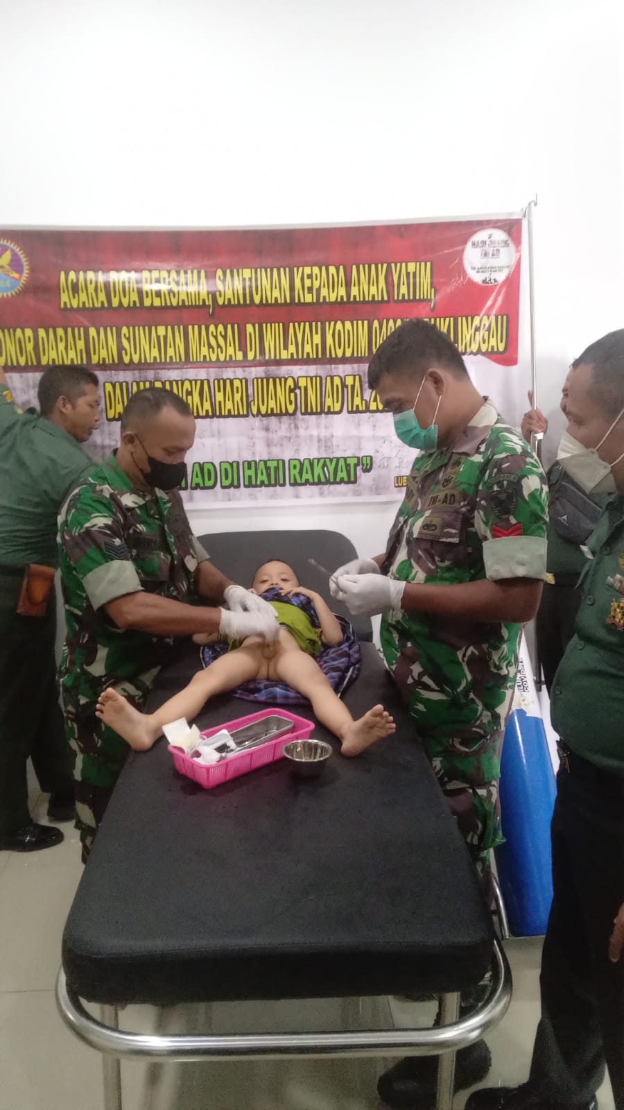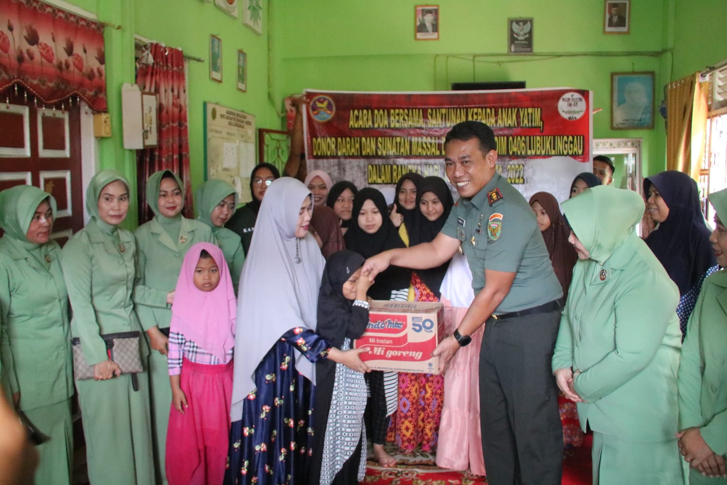 Seusai pelaksanaan Doa bersama dan Donor Darah kegiatan dilanjutkan dengan pemberian santunan dan Sembako kepada yayasan anak yatim diantaranya Panti Asuhan Putri Aisyiyah Siti Khadijah, Yayasan Panti Asuhan Budi Mulia, dan Yayasan Panti Asuhan Al-Amin. Sedangkan Kegiatan Sunat massal sendiri dilaksanakan di Rumkitban 02.09.02/Lubuklinggau.