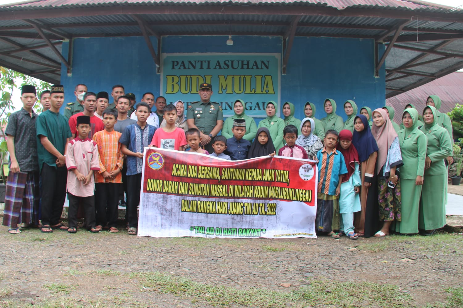 “Kegiatan ini merupakan kegiatan dalam rangka memperingati Hari Juang TNI-AD Ke-77 dan begitu juga dengan dengan pemberian santunan dan Sembako, ini bentuk Empati TNI kepada anak-anak Yatim Piatu yang ada di Panti Asuhan ataupun yayasan yang membutuhkan perhatian dan uluran tangan”, jelas Dandim.