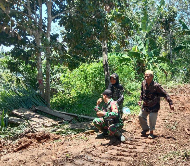 Jalan yang baru di berbaik dengan posisi menanjak yg sangat menyulitkan seorang kakek dan nenek-nenek yang sedang melintas sehingga menggugah Babinsa yang saat itu ada di lokasi untuk berinisiatif membantu dengan cara memapah. Rabu (14/12/2022).