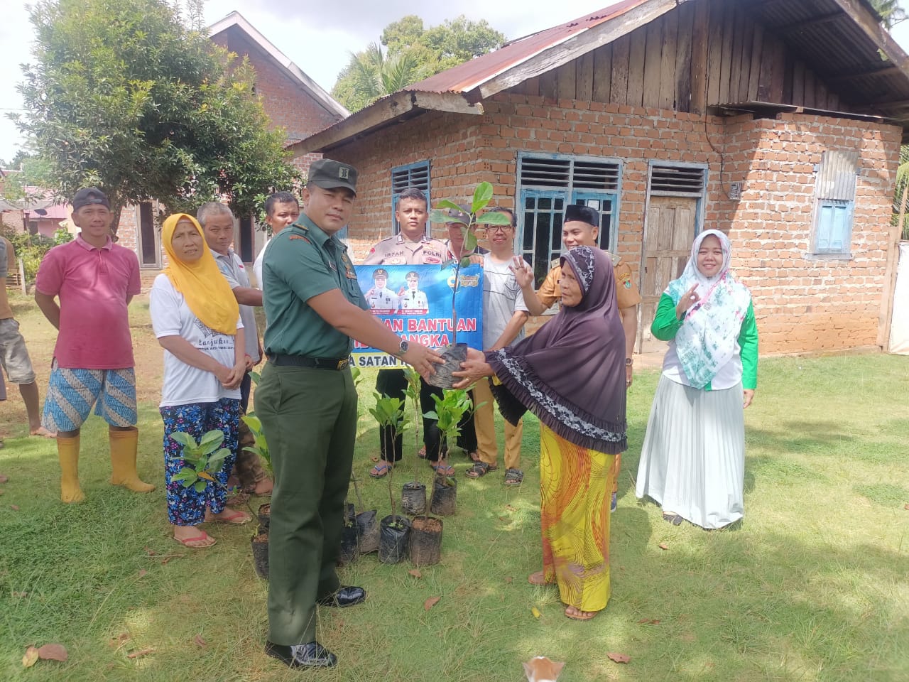 Babinsa Koramil 06/Tugumulyo Kodim 0406/Lubuklinggau peltu dedi pada saat menghadiri pendistribusian bibit pohon nangka kepada warga desa Satan indah jaya Kecamatan Muara Beliti Kabupaten Musi Rawas yang bersumber dana Desa. Rabu (14/12/2022).