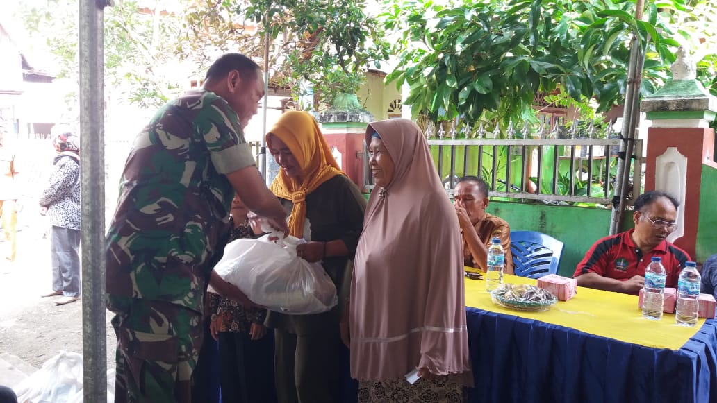 Babinsa Dampingi Penyaluran Paket Sembako Untuk Fakir Miskin dan Kaum Lansia Kelurahan Surulangun