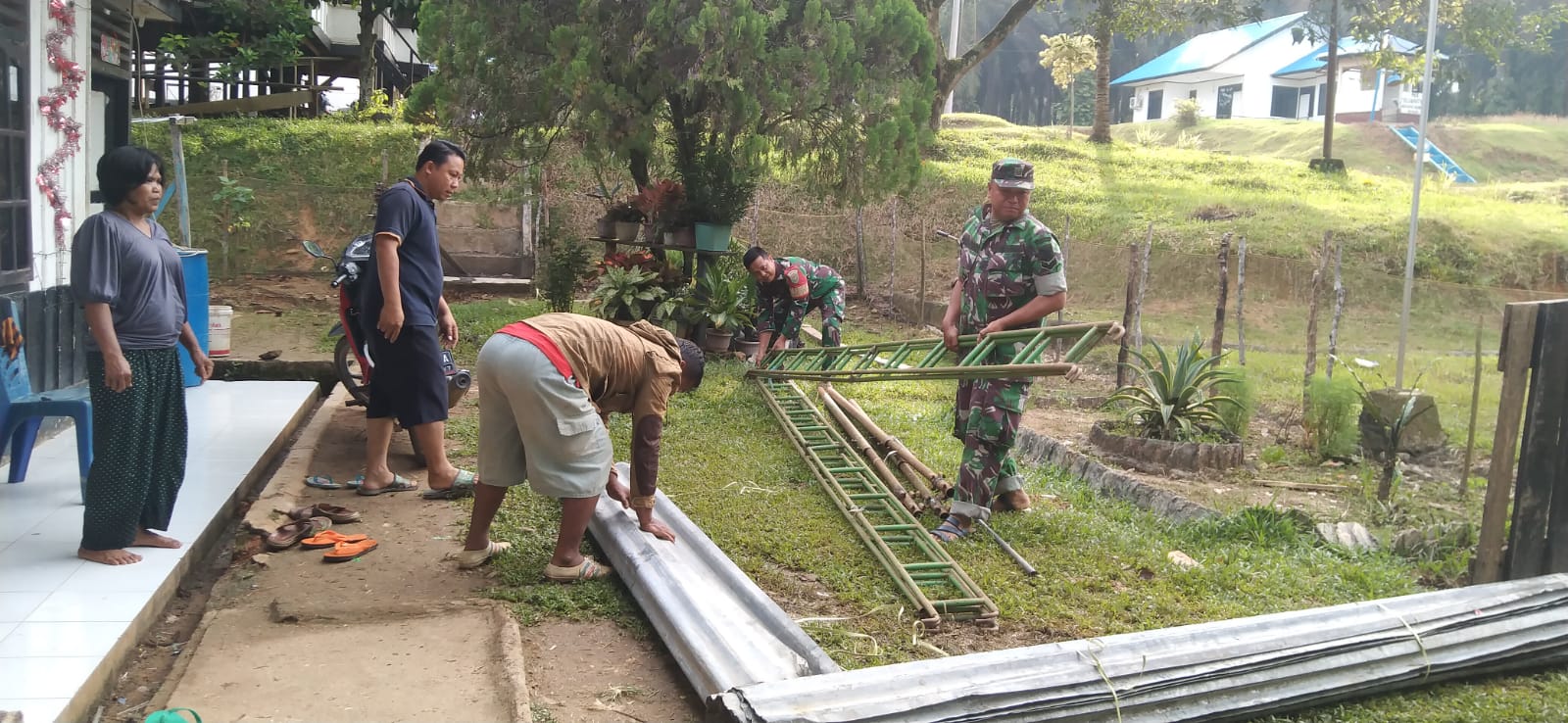 Kegiatan kerja bakti yang dilakukan secara gotong royong dengan di bantu warga masyarakat setempat dengan sasaran pembersihan halaman Gereja, dengan gotong-royong ini, TNI bersama masyarakat terus memegang teguh tradisi turun-temurun yang menjadi budaya positif yang harus dipertahankan.