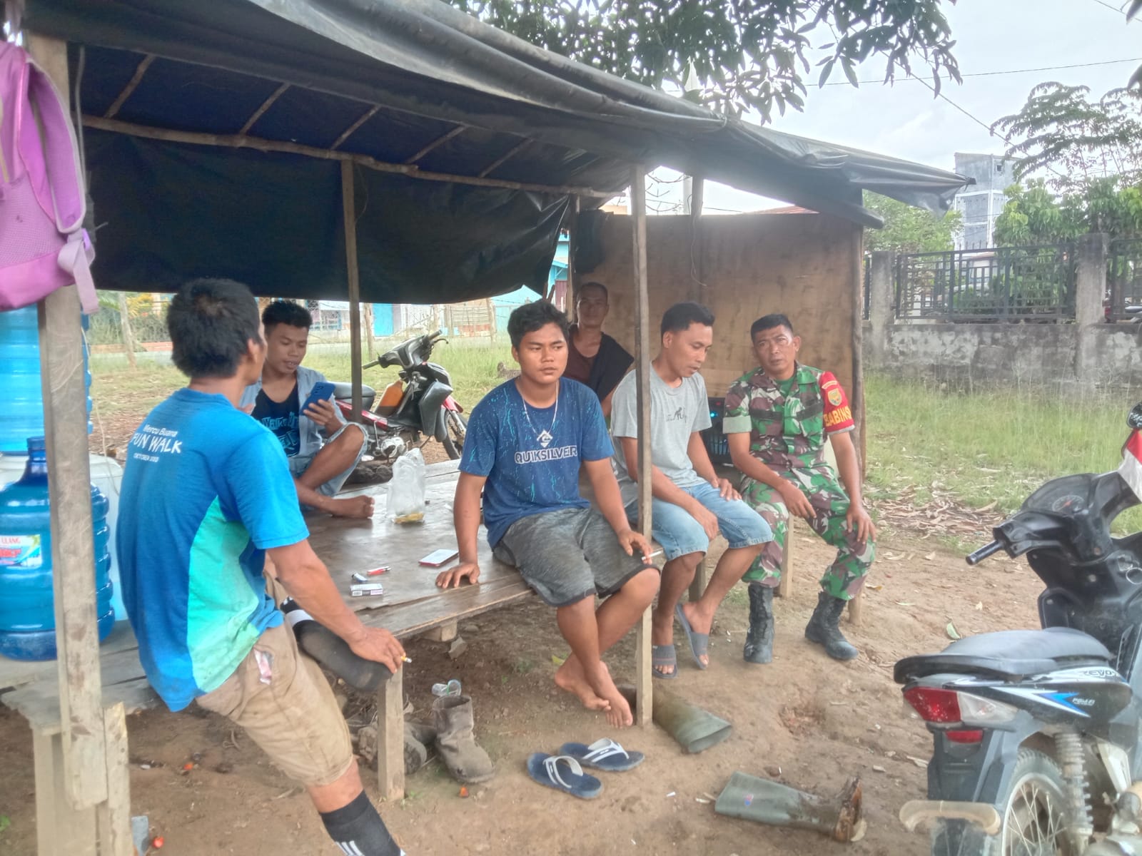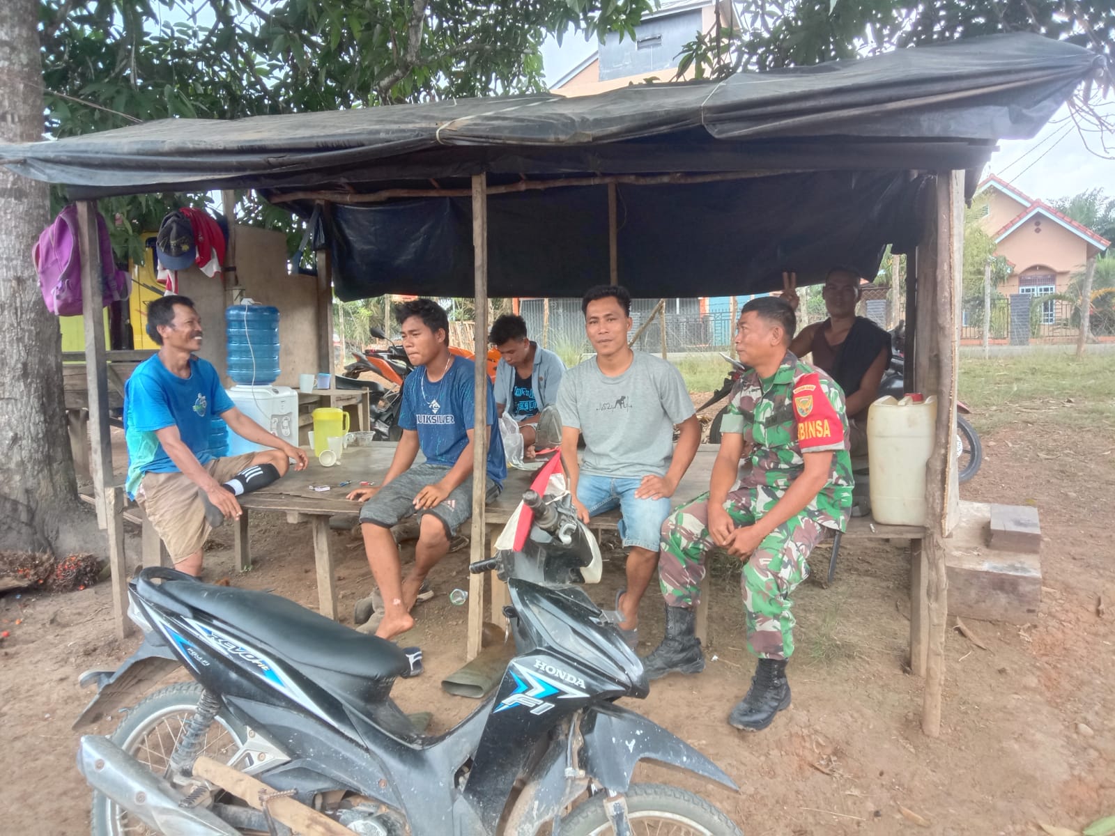 Pada kesempatan kali ini Serda Nurkholis melaksanakan sambang di kampung Desa Setia Marga dan melaksanakan Komsos dengan Warga Binaan dengan Warga Yang Lagi Kumpul Di Saung.