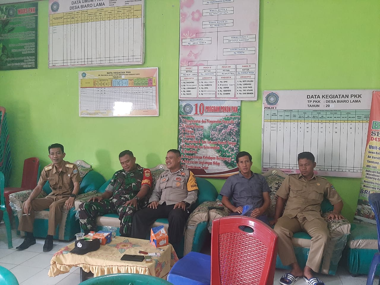 Babinsa Koramil 406-02/Rawas Ilir Serda Purwoko bersama Bhabinkamtibmas melaksanakan kegiatan Komsos dengan perangkat desa binaan bertempat di Desa Biaro lama Kecamatan Karang dapo Kabupaten Musi Rawas utara Sabtu (31/12/2022).