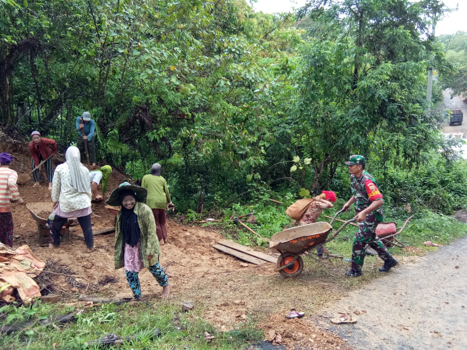 “Kegiatan kerja bakti ini dilakukan karena kondisi parit dan bahu jalan yang ada semakin menyempit karena ditumbuhi rumput dan semak yang menjalar ke bahu jalan sehingga sangat kotor,”dan selain itu Babinsa juga menimbun jalan yg berlubang”.jelasnya.