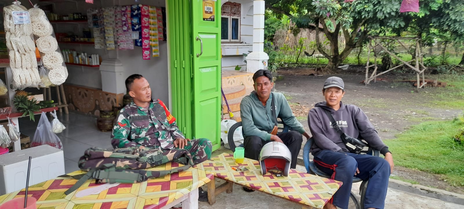 Babinsa Koramil 406-06/Tugumulyo koptu Taufik Anjang sana di warung ibuk Erni desa binaan.