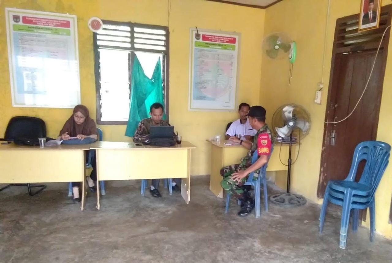 ” Kali ini sengaja saya mendatangi kantor desa Air Beliti, dengan tujuan untuk menjalin kerjasama. Dalam hal ini saya selaku Babinsa mengharapkan bantuan dan dukungan pemerintah desa untuk bersama-sama mensosialisasikan ataupun mengkampanyekan kepada warga yang memiliki anak tamat SMA agar tergerak untuk mendaftarkan diri menjadi calon anggota TNI”, ungkap Babinsa.