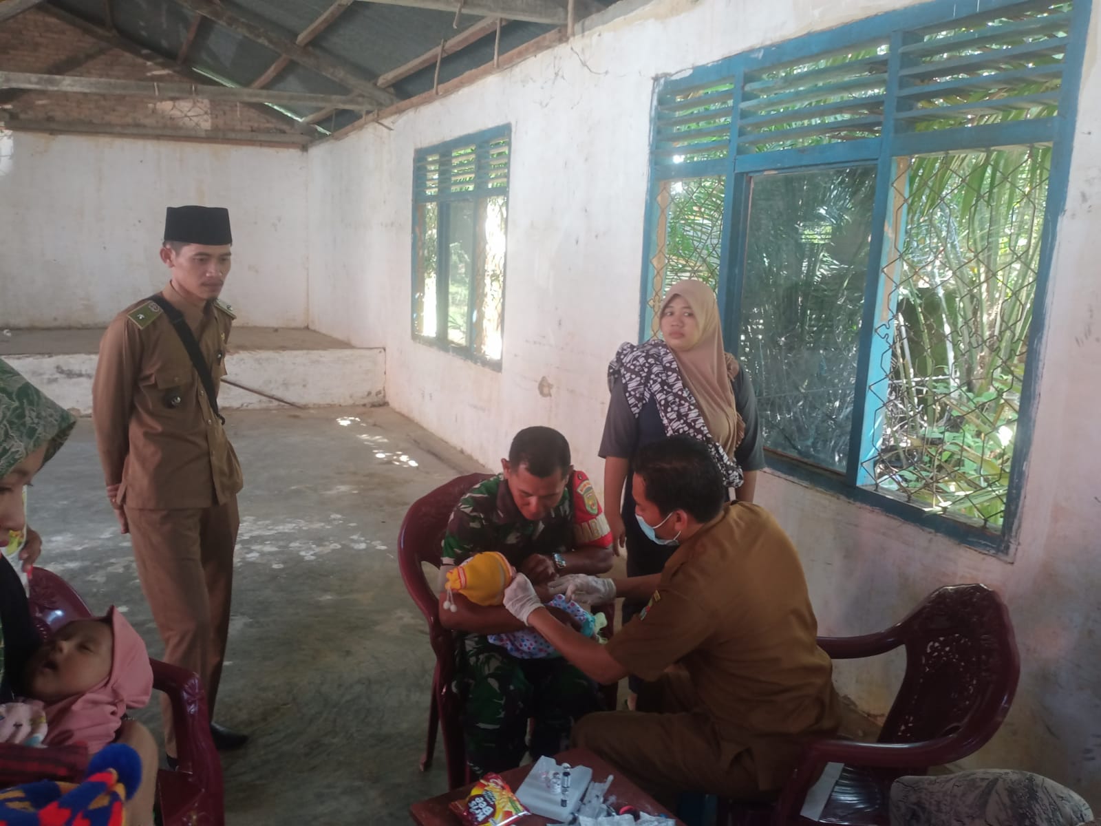 Babinsa Gendong Balita Untuk Di Imunisasi