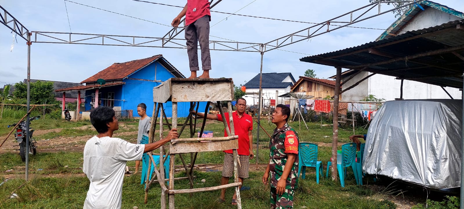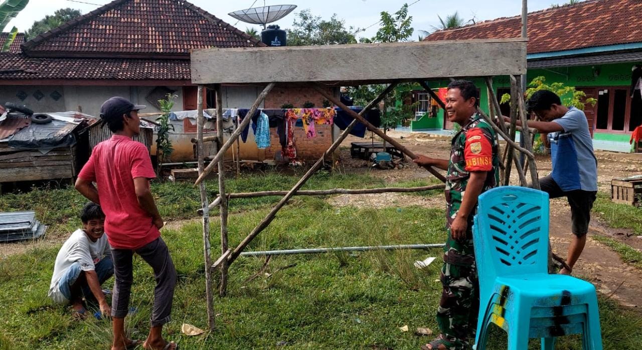 Sebagai bentuk perhatian dan Kepedulian terhadap salah satu warga binaan yang akan melangsungkan hajatan khitanan Serda Aroni Rosen Babinsa Koramil 406-01/Rawas Ulu Kodim 0406/Lubuklinggau bersama masyarakat bergotong royong mendirikan tenda di Desa Sukomoro Kecamatan Rawas Ulu Kabupaten Musi Rawas Utara, Jum’at (20/01/2023).