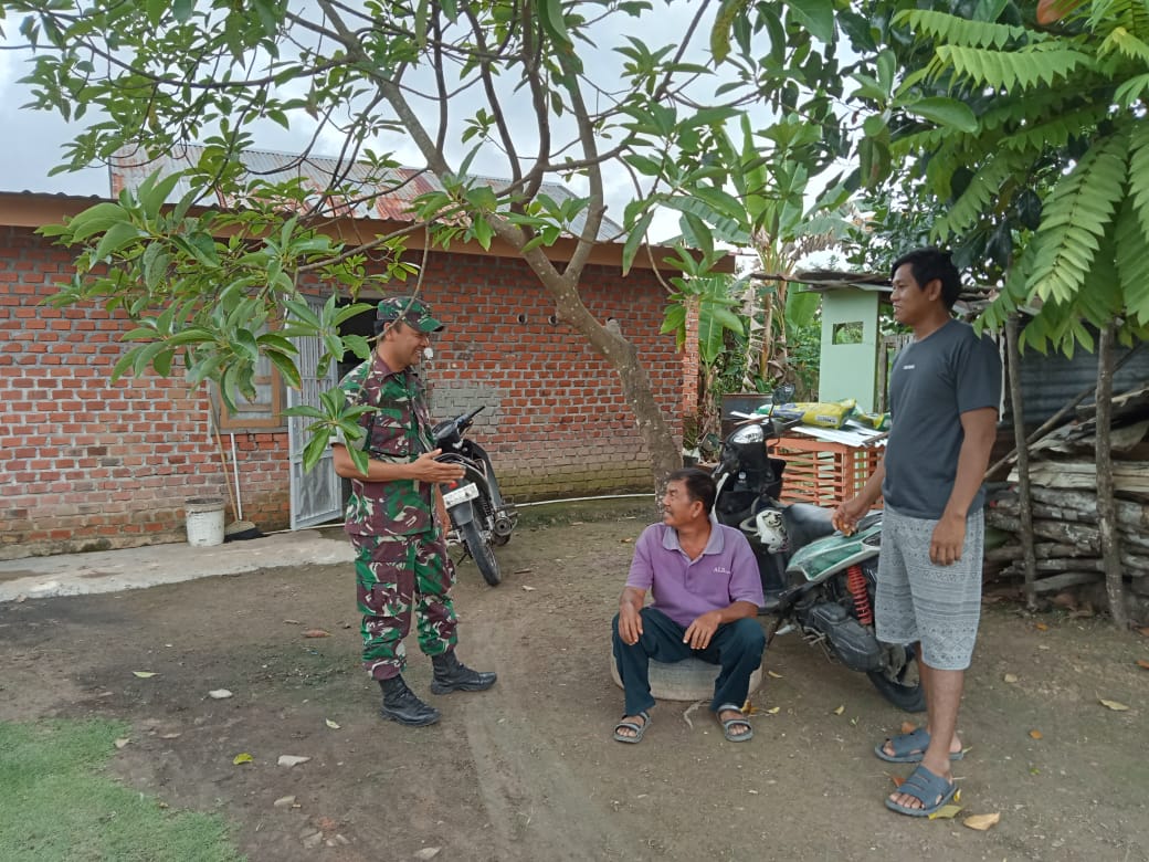 Babinsa Koramil 406-07/Jayaloka komsos dengan masyarakat desa binaan.