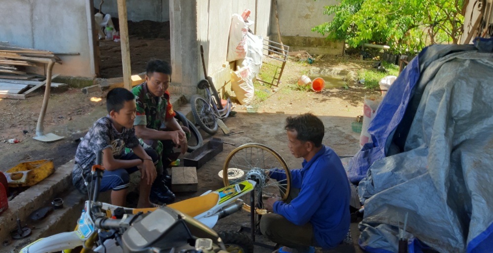 Koptu Samsul Bahri sambangi warga pengusaha bengkel sepeda di desa Megang sakti ll.