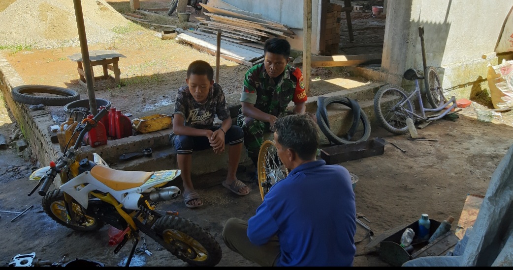 Babinsa Koramil 406-04/Muara Lakitan, Koptu Samsul Bahri menyambangi bengkel Sepeda milik warga binaannya, bapak saidi.di desa megang sakti ll kecamatan Megang sakti kabupaten Musi Rawas. Minggu (22/01/2023).