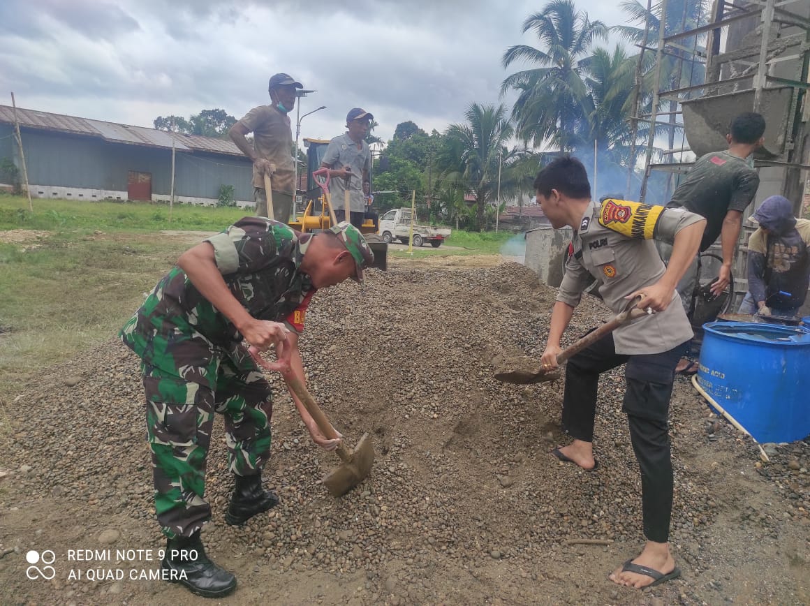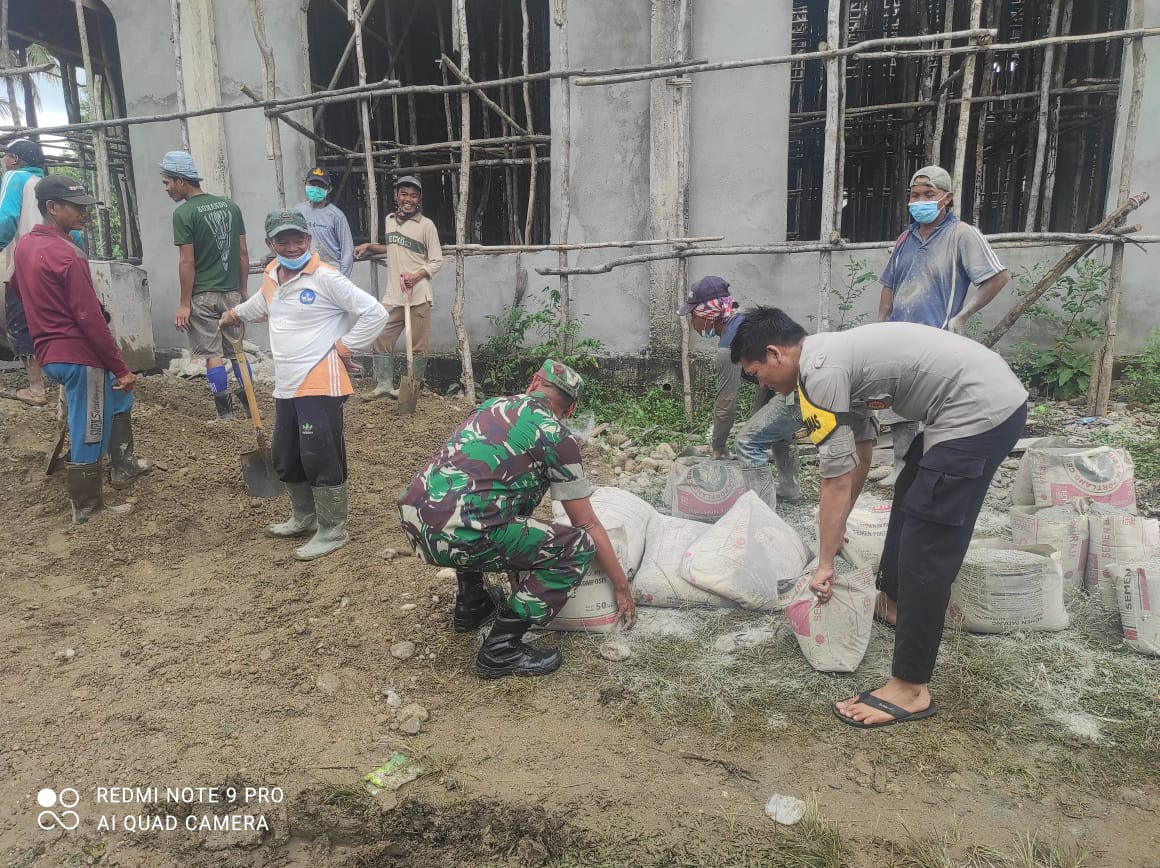 Dalam Rangka Pembinaan Teritorial (Binter) guna mempertebal budaya kegotong-royongan di kehidupan bermasyarakat, anggota Koramil 406-01/Rawas ulu Kodim 0406/Lubuklinggau Serma Irwan dan Babinkamtipmas bersama warga melaksanakan Karya Bakti pembangunan Masjid di Desa Sukomoro, Kecamatan Rawas ulu, Kabupaten Musi Rawas Utara, Minggu (22/01/2023).