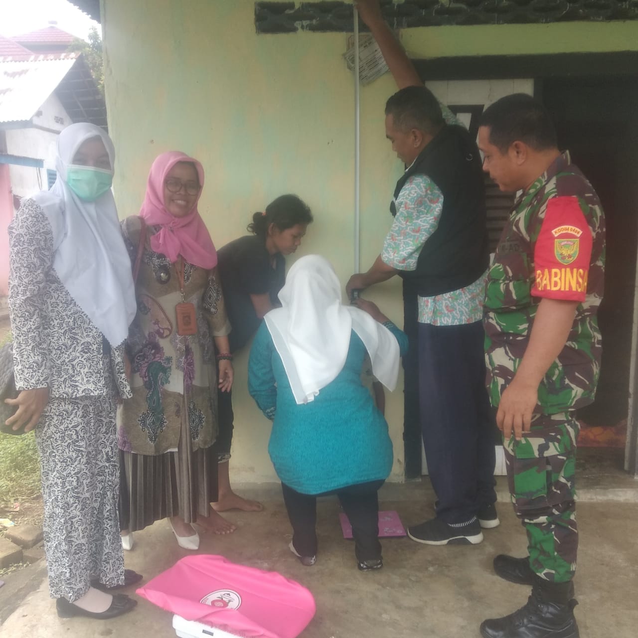 Babinsa 406-08/Kota Lubuklinggau Mendampingi Bagikan Susu Formula oleh Puskesmas Petanang Kepada Stunting