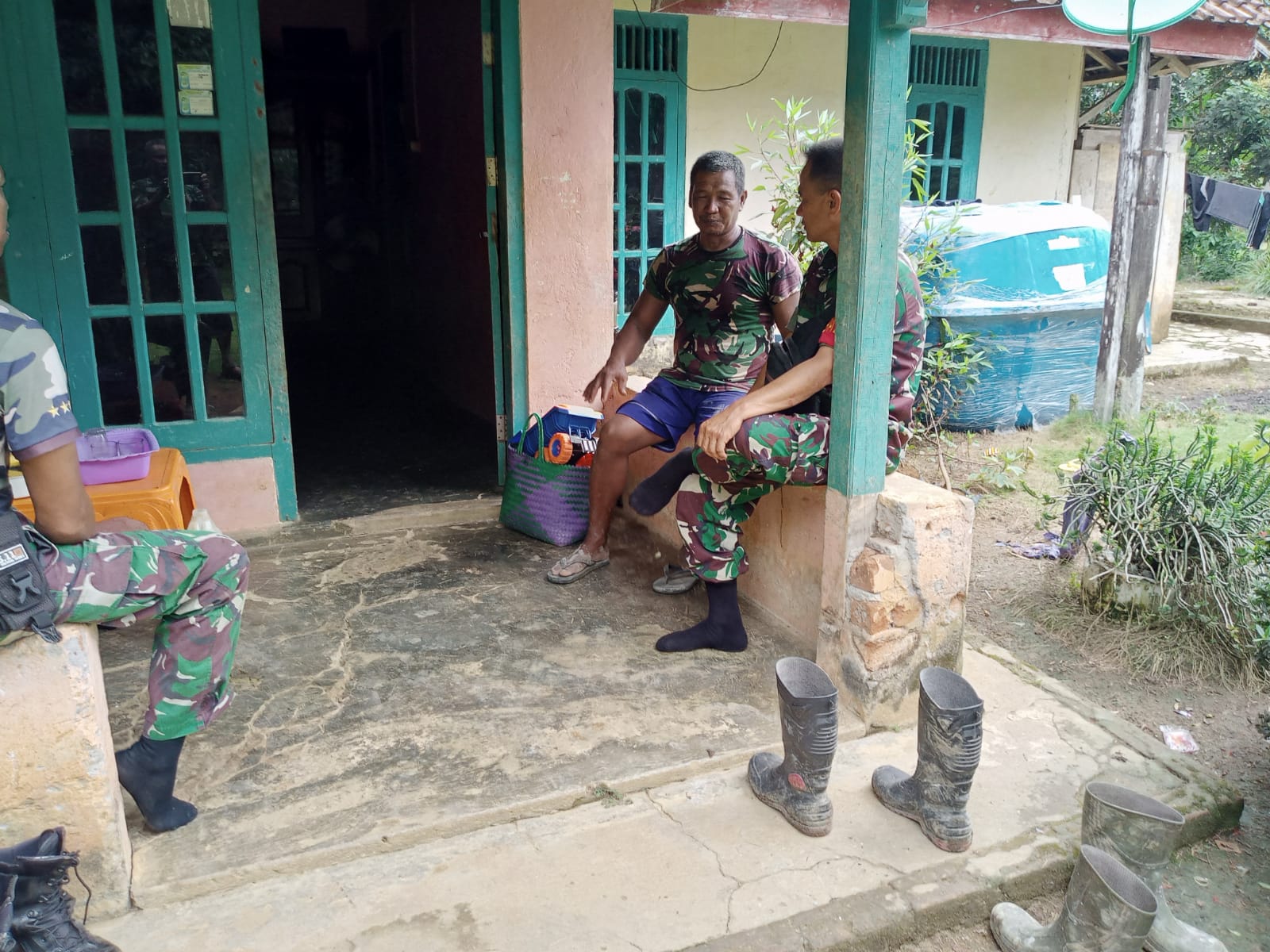 Babinsa Koramil 406-07/jayaloka pelda Amardi komsos di rumah bapak selamet di desa Margoyoso