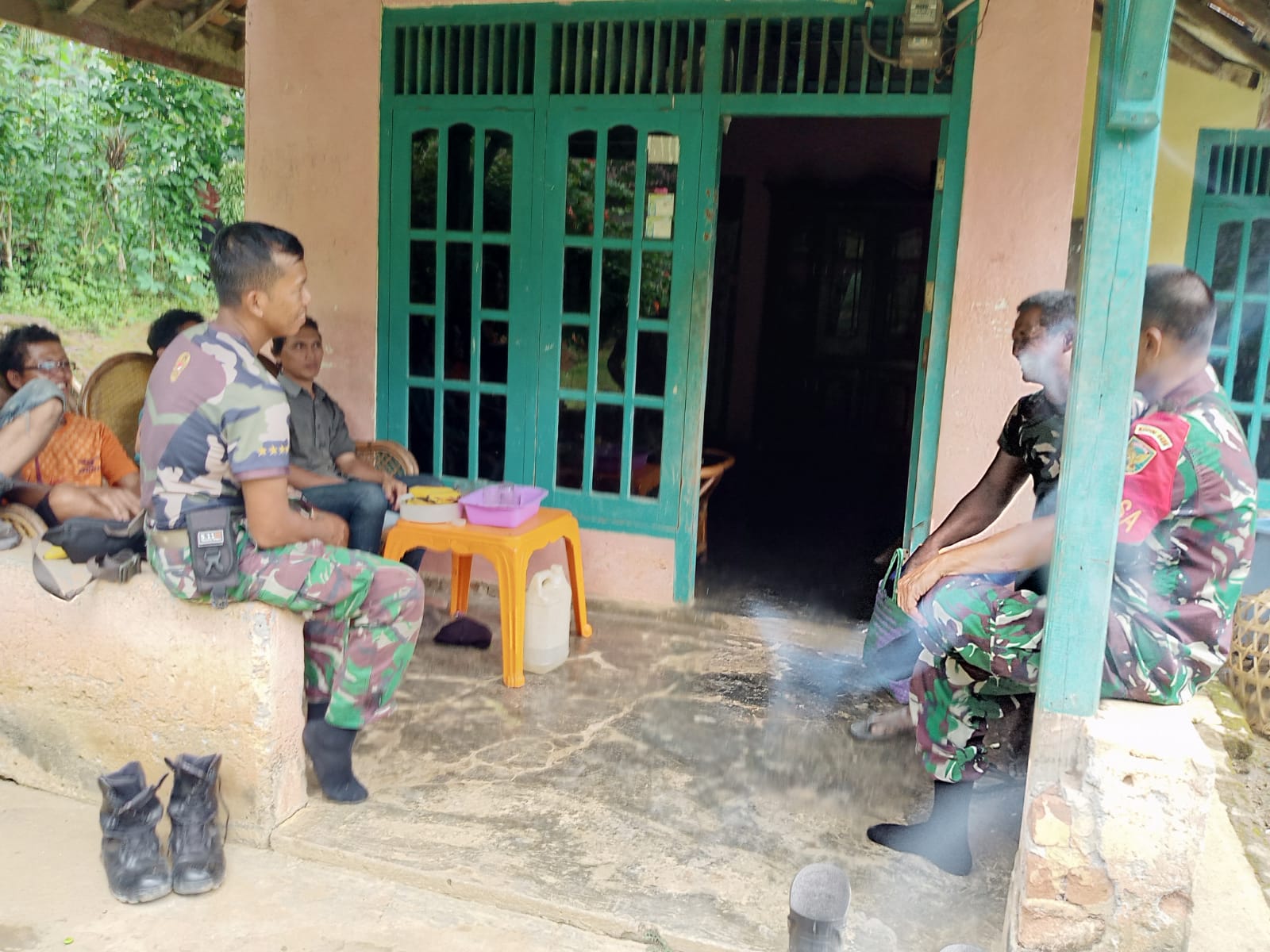 Babinsa Koramil 406-07/jayaloka pelda Amardi komsos di rumah bapak selamet di desa Margoyoso