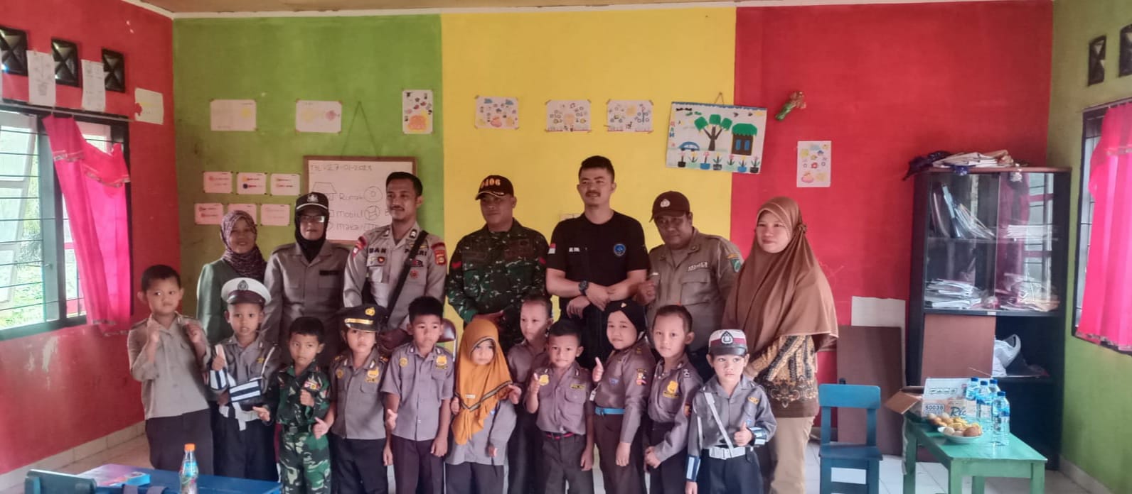 Pengenalan profesi TNI diawali dengan komunikasi kepada tenaga pendidik diruang guru kemudian komunikasi dan berinteraksi dengan siswa – siswi mulai yel-yel, bernyanyi, membaca serta menulis.