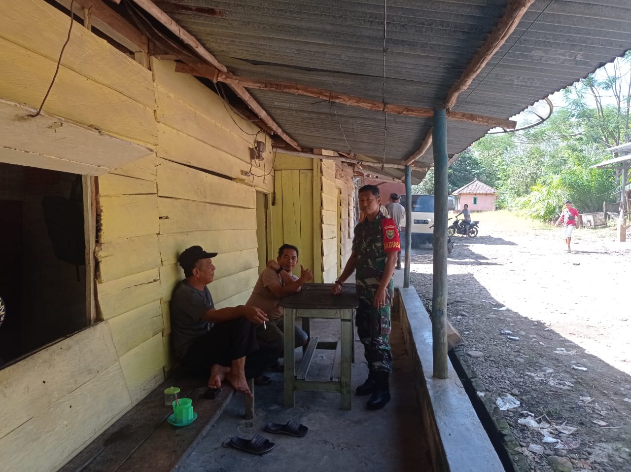 Babinsa Koramil 406-07/Jayaloka Komsos Bersama Tokoh Masyarakat Di Wilayah Binaan