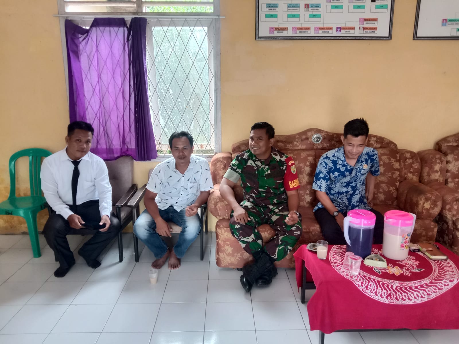 Serda Purwoko komsos dengan masyarakat dan perangkat desa di kantor desa Biaro baru.