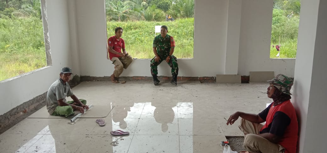 Sambil Istirahat, Babinsa Himbau Tukang Bangunan Dalam Melaksanakan Pekerjaan