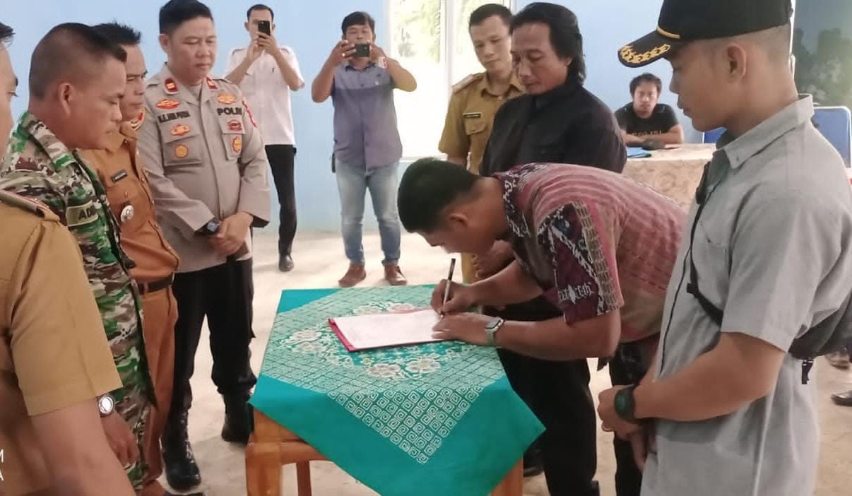 Danramil 406-05/Muara Kelingi Diwakili Babinsa Hadiri Penanda Tanganan Fakta Integritas Deklarasi Damai Calon Kades