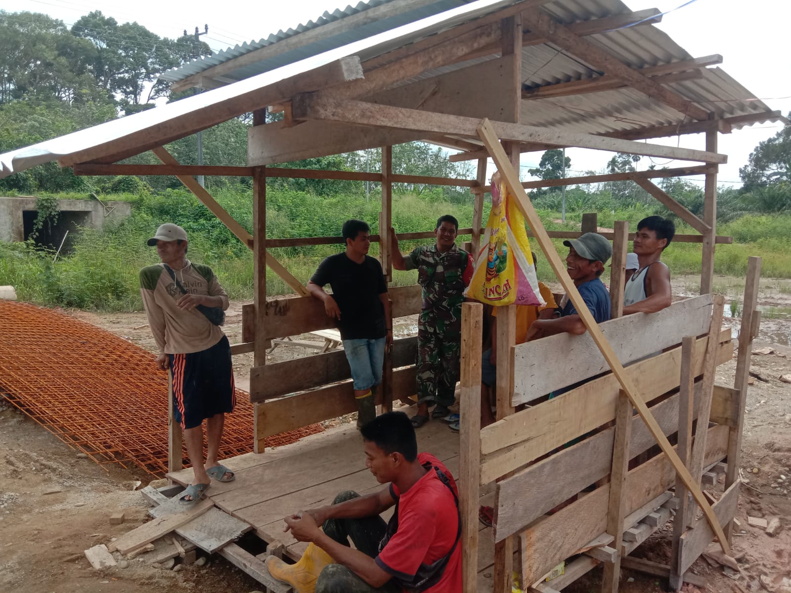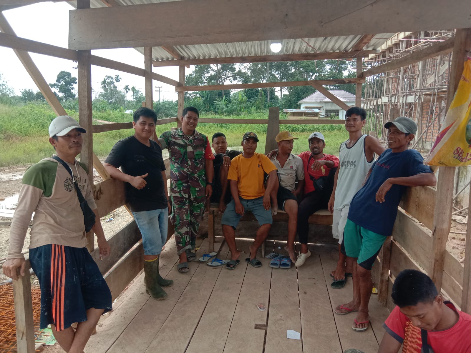 Lensa Garuda- Musi Rawas Utara, Disela-sela waktu istirahat para pekerja bangunan, Babinsa Koramil 406-03/Muara Rupit Serda Khairul Kusri menjalin keakraban dengan masyarakat yang berprofesi sebagai pekerja bangunan. Bertempat di suatu tempat peristirahatan para pekerja. Desa Lubuk Kumbung Kecamatan Karang Jaya, Kabupaten Musi Rawas Utara. Kamis (9/3/2023).