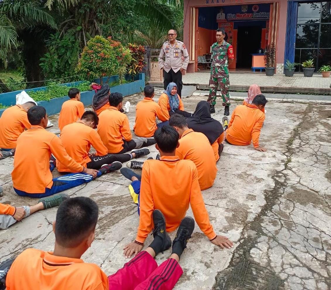 Babinsa Koramil 406-03/muara rupit bersama Bhabinkamtibmas bersinergi guna meningkatkan kualitas Sumber Daya dengan melatih anggota bpbd, di halaman kantor BPBD Kecamatan muara rupit, Kabupaten Musi Rawas Utara, Senin (03/04/2023).