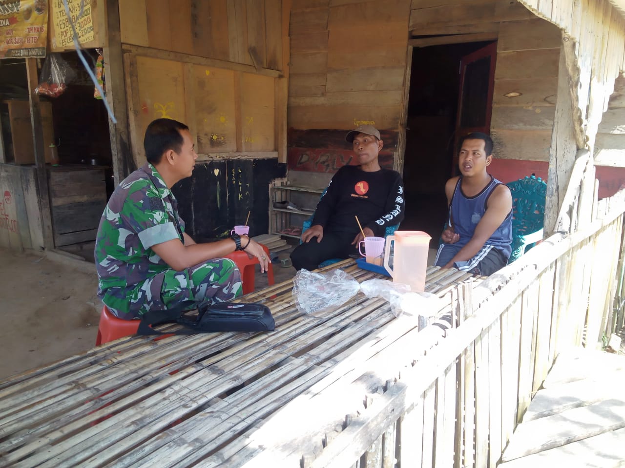 Kalai ini Serda Ali Mubin sambangi rumah bapak lasmijan warga desa bumi makmur dalam komsos nya kalai ini Serda Ali minim nyampaikan tentang Kamtibmas,kepada bapak lasmijan karna marak nya kasus kehilangan di desa bumi makmur pada saat bulan puasa yang di akibatkan oleh oknum yang kurang bertanggung jawab.