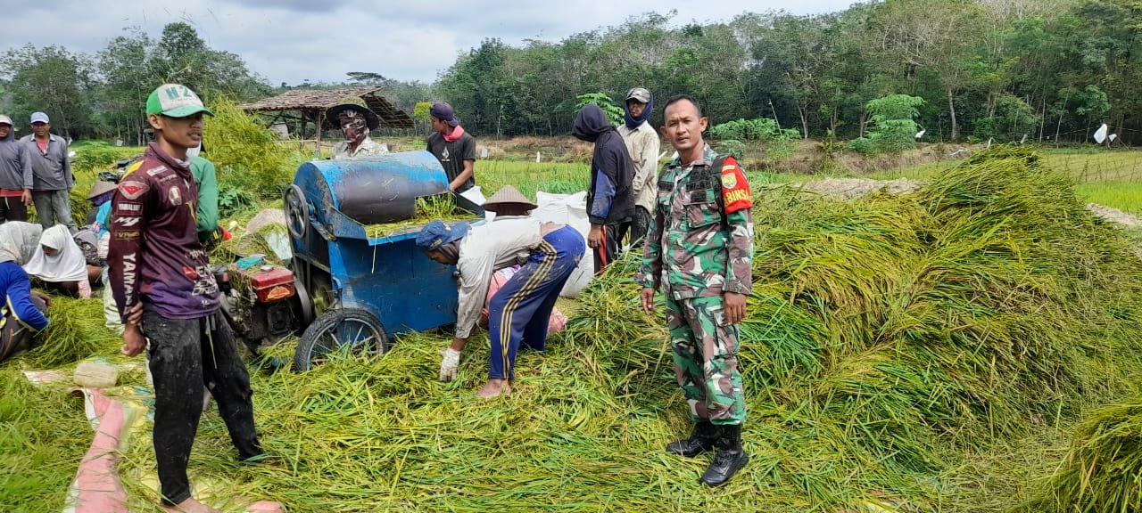 Wujud dukungan TNI khususnya prajurit kewilayahan yaitu Babinsa dalam mendukung ketahanan pangan, dengan Semangat ikut serta terjun langsung ke sawah bantu para petani desa binaannya saat memanen padi, inilah yang dilakukan oleh Babinsa kepada para petani warga desa binaannya.