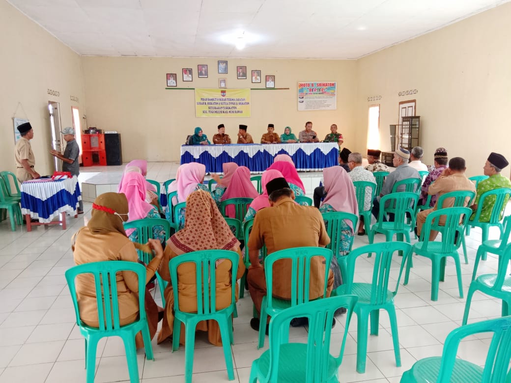 Wakili Danramil 406-06/Tugumulyo, Babinsa Desa b Srikaton Serda kamsiran menghadiri kegiatan serah terima jabatan lurah b srikaton kecamatan TuguMulyo kabupaten Musi Rawas, Selasa (11/04/2023).