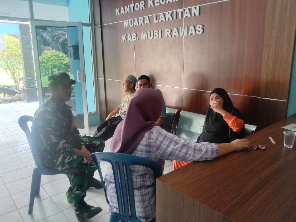 Pantau Wilayah Binaan, Babinsa Koramil 406-04/Muara Lakitan Komsos di Kantor Camat Muara Lakitan.