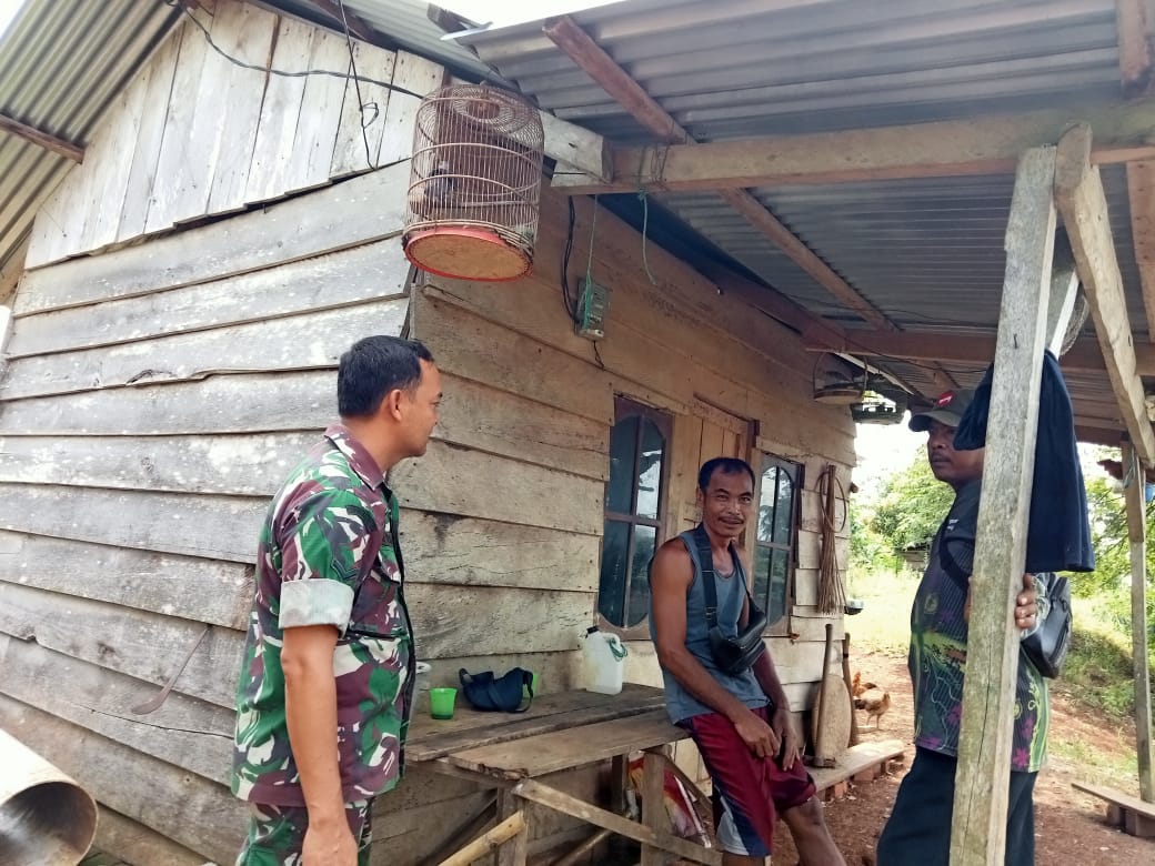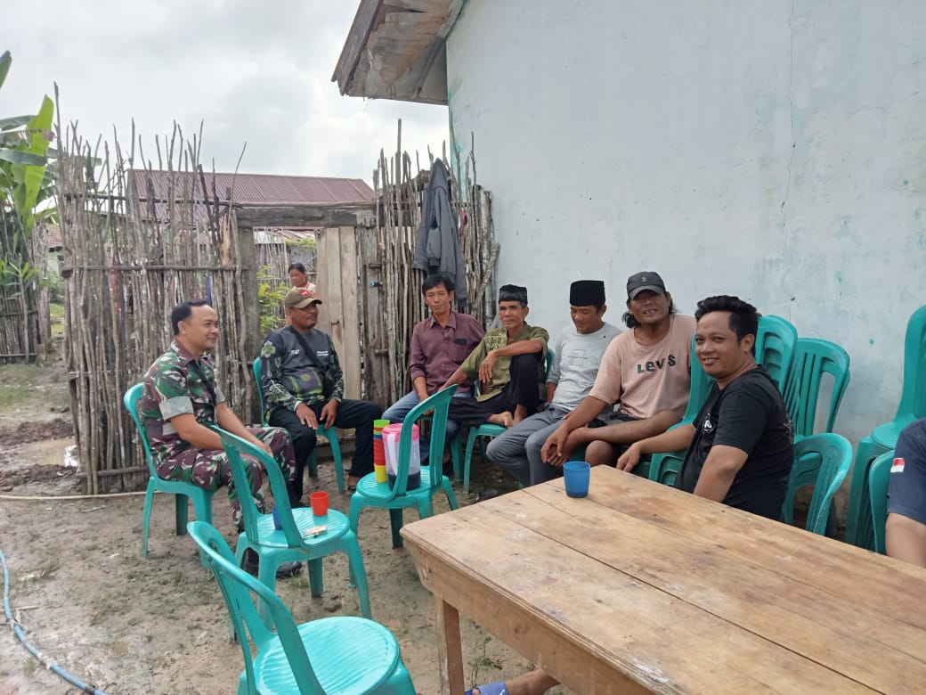 Pada kesempatan ini Serda Jiki Apriadi berbincang-bincang dengan tokoh masyarakat antara lain dengan bapak Rudi selaku Ketua Kampung Desa Rantau Alih dan Warga.