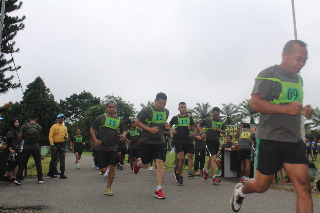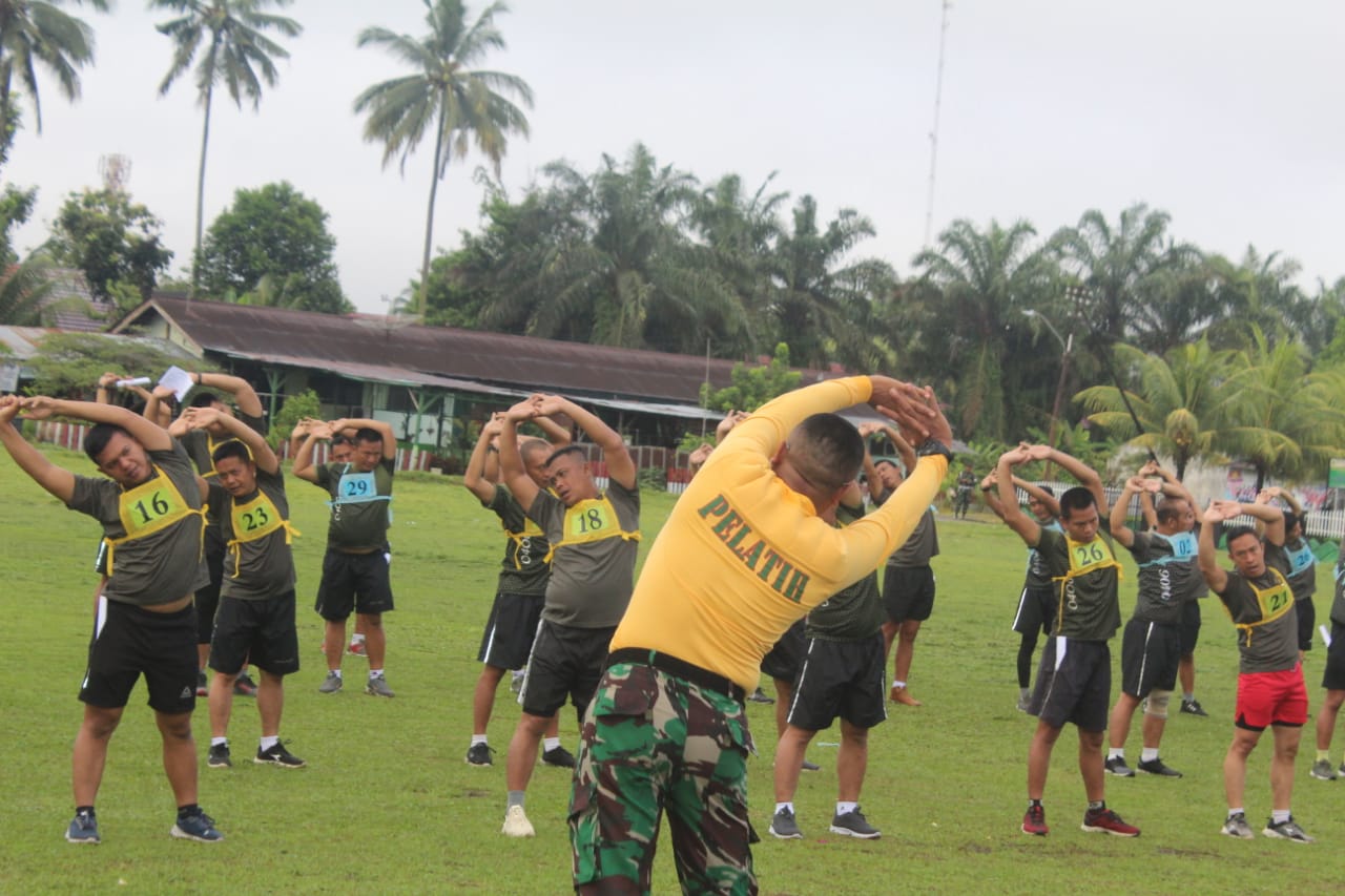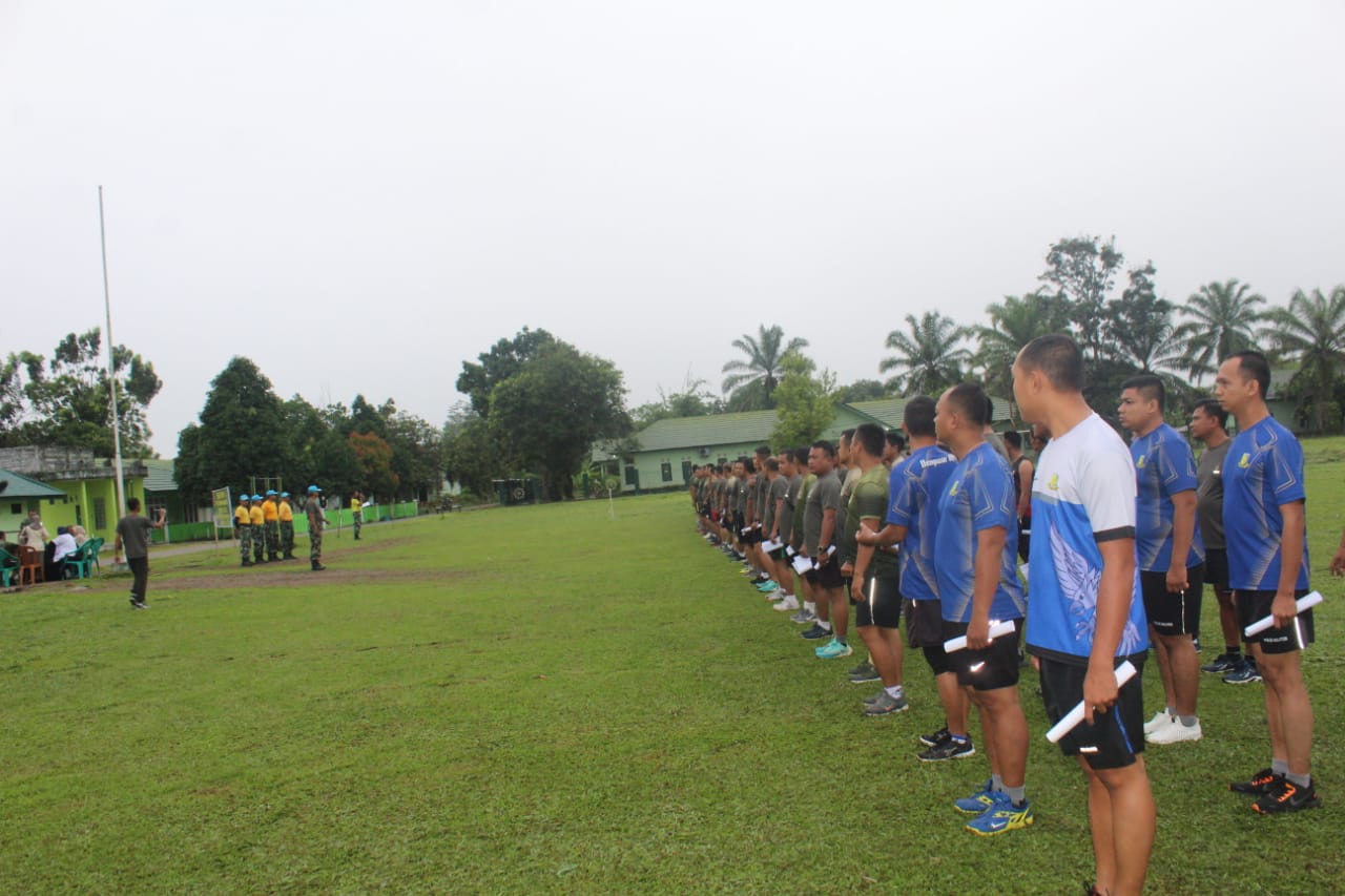 Dalam pelaksanaannya seluruh peserta melaksanakan senam peregangan guna melemaskan otot yang tegang untuk menghindari cidera otot saat pelaksanaan dipimpin oleh salah satu Bintara pelatih Jasmani Kodim 0406/ Lubuklinggau.