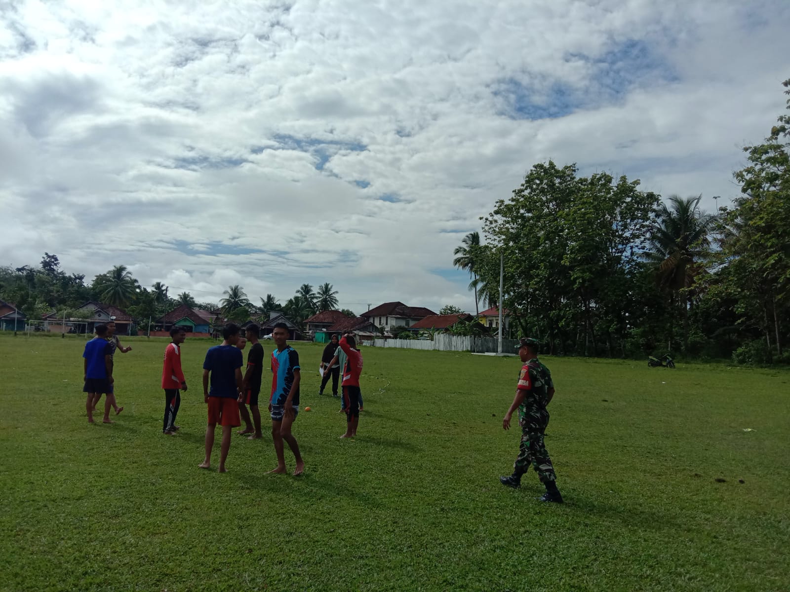WUJUD KEPEDULIAN DI DESA BINAAN, BABINSA KORAMIL 406-01/RAWAS ULU LAKSANAKAN PEMBINAAN OLAH RAGA KEPADA PEMUDA DESA BINAAN.