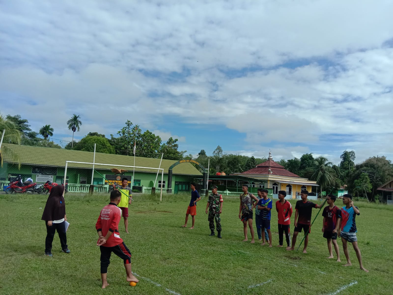 WUJUD KEPEDULIAN DI DESA BINAAN, BABINSA KORAMIL 406-01/RAWAS ULU LAKSANAKAN PEMBINAAN OLAH RAGA KEPADA PEMUDA DESA BINAAN.