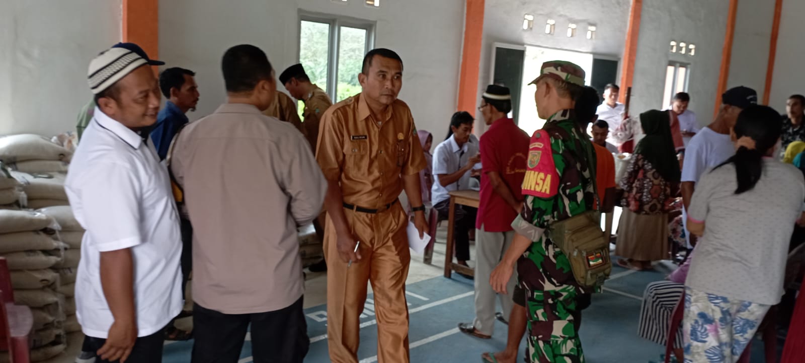 Babinsa Koramil 04/Muara Lakitan Kodim 0406/Lubuklinggau sertu yunistan melaksanakan pendampingan pembagian bantuan cadangan pangan pemerintah dari Badan Pangan Nasional melalui pemerintah desa Tegal Sari sp 5. Di gedung serbaguna desa Tegalsari sp 5. Kecamatan Megang sakti, Kabupaten Musi Rawas, Kamis (11/05/2023).
