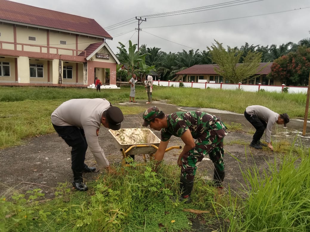 Kegiatan gotong royong tersebut, dilakukan Serda joni di halaman gedung serbaguna Kantor Lurah Muara Lakitan.