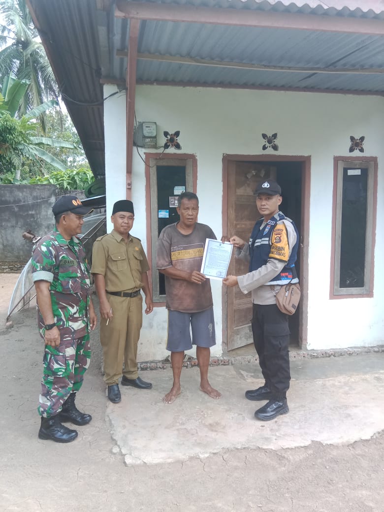 Babinsa Koramil 406-07/jayaloka Sertu M Daud dan Bhabinkamtibmas Polsek jayaloka, bersama perangkat desa dan masyarakat membagikan selembaran larangan membakar hutan dan lahan (Karhutlah) di Desa Sugi waras, Kecamatan Sukakarya, Kabupaten Musi Rawas, Rabu (24/05/2023).