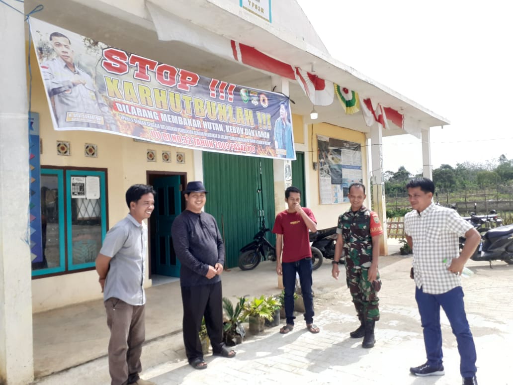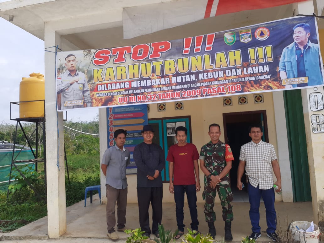 Babinsa Serma suwitno dan Perangkat Desa Bersinergi Pasang Spanduk Stop Karhutbunlah.