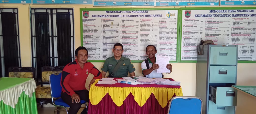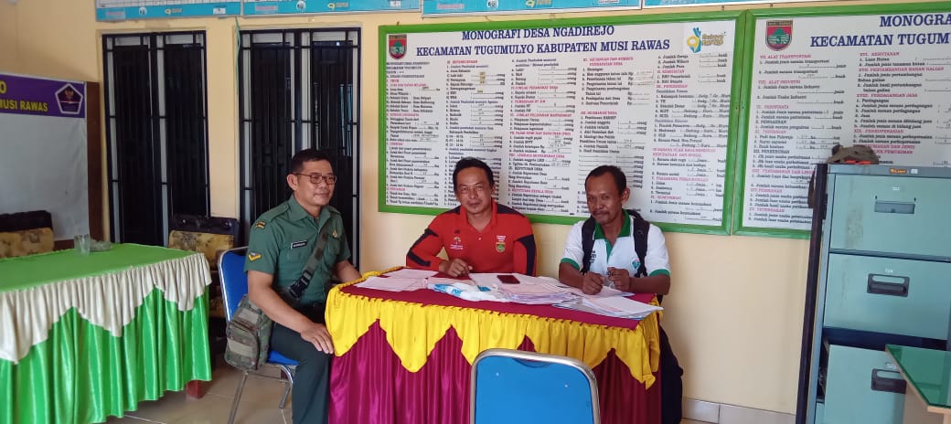 Serda daswiranto Babinsa Koramil 406-06/Tugumulyo melaksanakan Komsos di Kantor desa Ngadirejo, kecamatan Tugumulyo kabupaten Musi Rawas. KAMIS (24/05/2023).