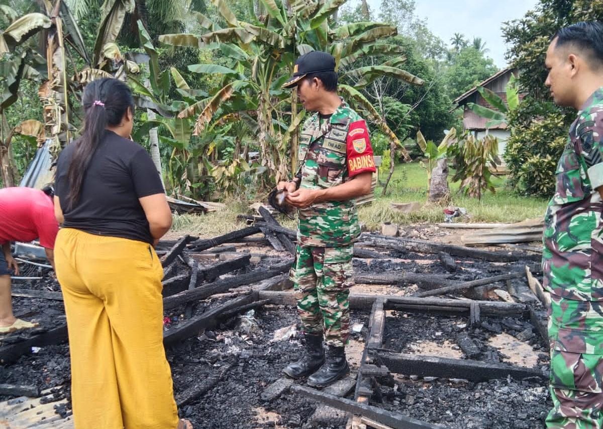 Kegiatan sambang warga yang dilakukan oleh anggota Koramil 406-05 Muara Kelingi ditempat korban kebakaran rumah yang menimpa keluarga ibu Mita binti suhada umur 26 tahun yang aktivitasnya sehari-hari sebagai