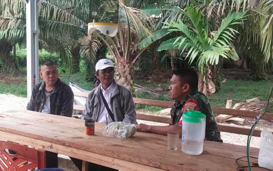 Wujud Sinergitas, Babinsa Koramil 406-03/Muara Rupit Sertu Ade arief Komsos Dengan Perangkat Desa binaan.