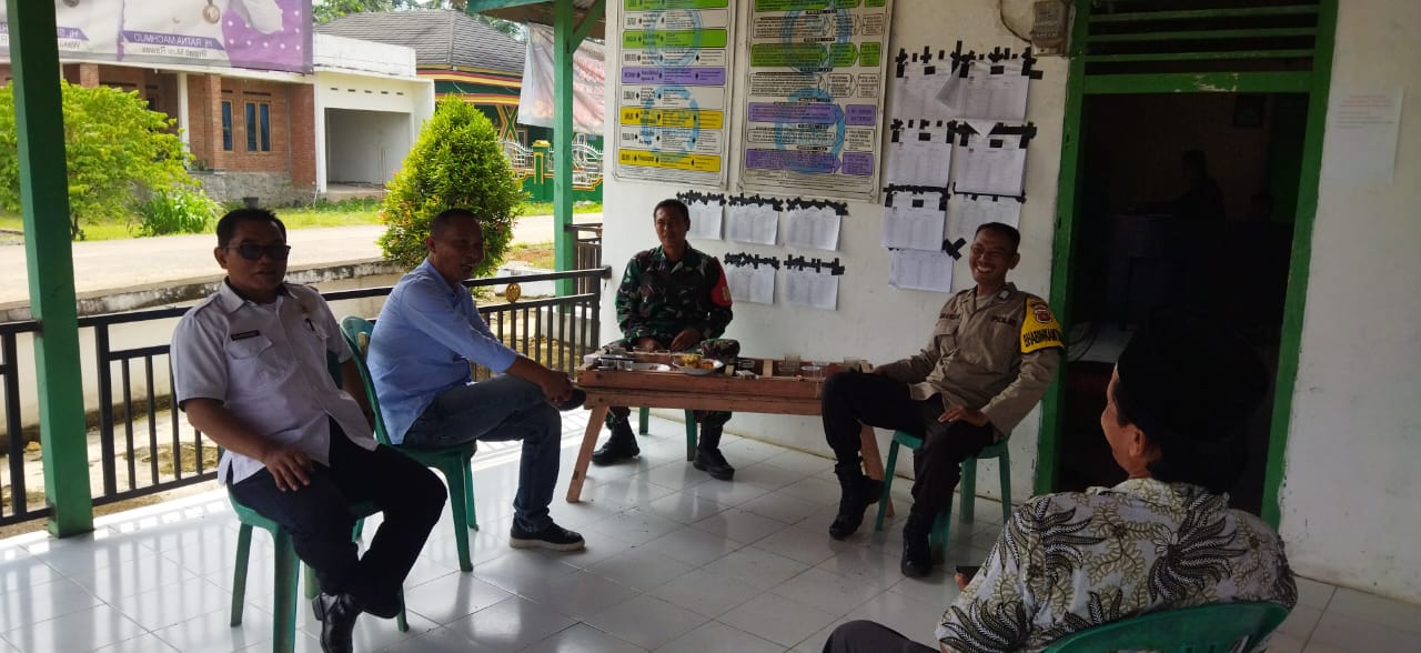 Wujud Sinergitas, Babinsa Koramil 406-04/Muara Lakitan Serma Taufik Hidayat Komsos Dengan Perangkat Desa binaan.
