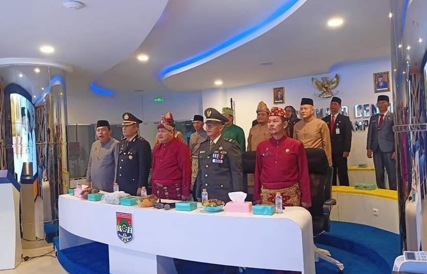 Lensa Garuda- Lubuklinggau, Dandim 0406/Lubuklinggau Letkol Arm Anggeng Prasetyo Sulistyono S.E.,M.Han diwakili Pasi Pers Dim Lettu Inf Abdi Nusa Putra mengikuti jalannya upacara peringatan Hari Lahir Pancasila secara virtual via zoom meeting,bersama Sekretaris Daerah (Sekda) Kota Lubuklinggau, H. Trisko Defriyansa dan sejumlah pejabat dilingkungan Pemkot Lubuklinggau. Bertempat di Command Center kantor wali kota, Kamis(1/6/2023).