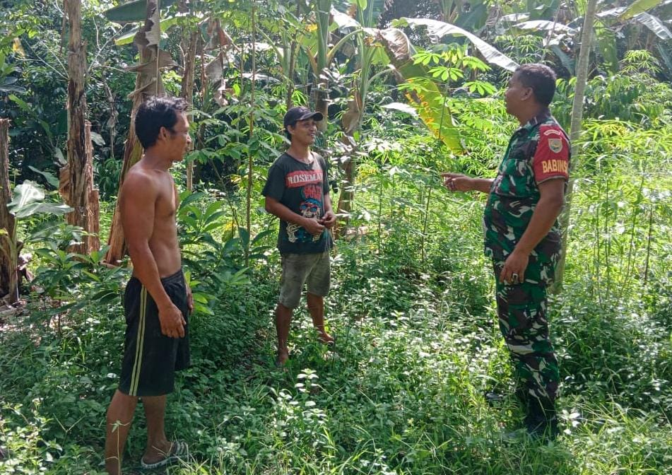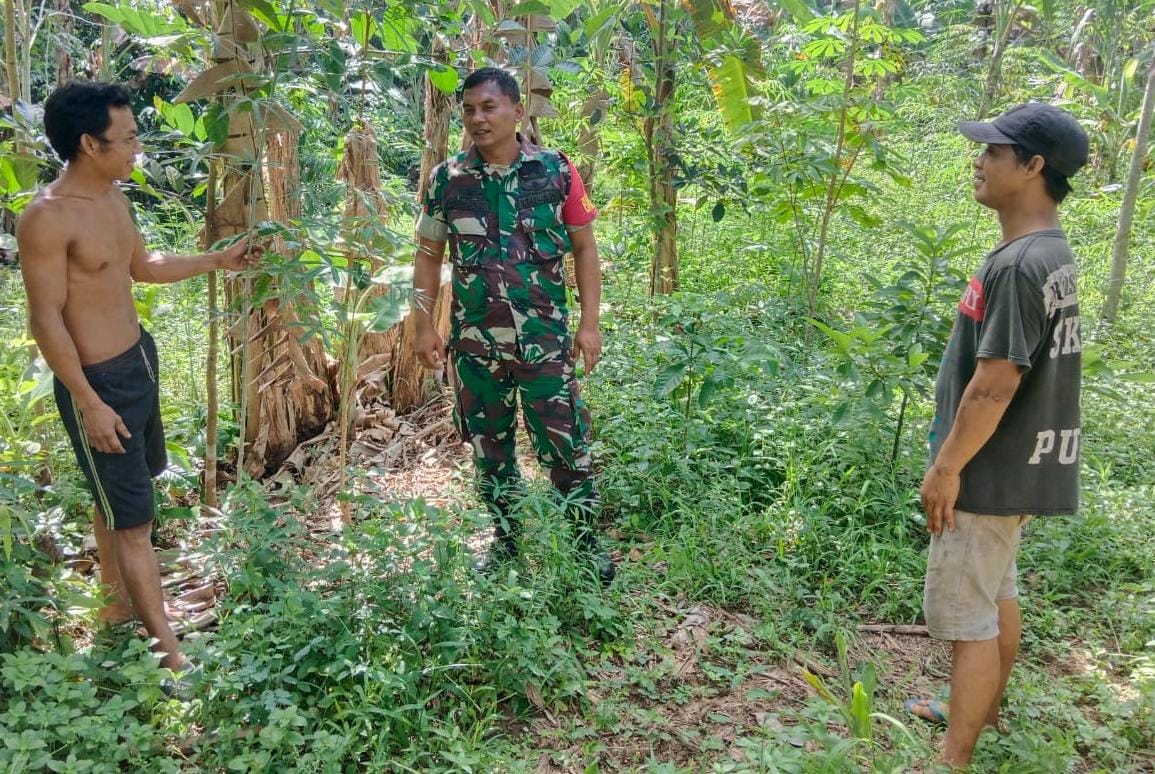 Babinsa Koramil 406-09/Terawas Kopka Yudo Kusomo melakukan patroli Karhutla bersama warga di areal perkebunan milik warga untuk mengantisipasi dan mencegah terjadinya kebakaran hutan dan lahan.