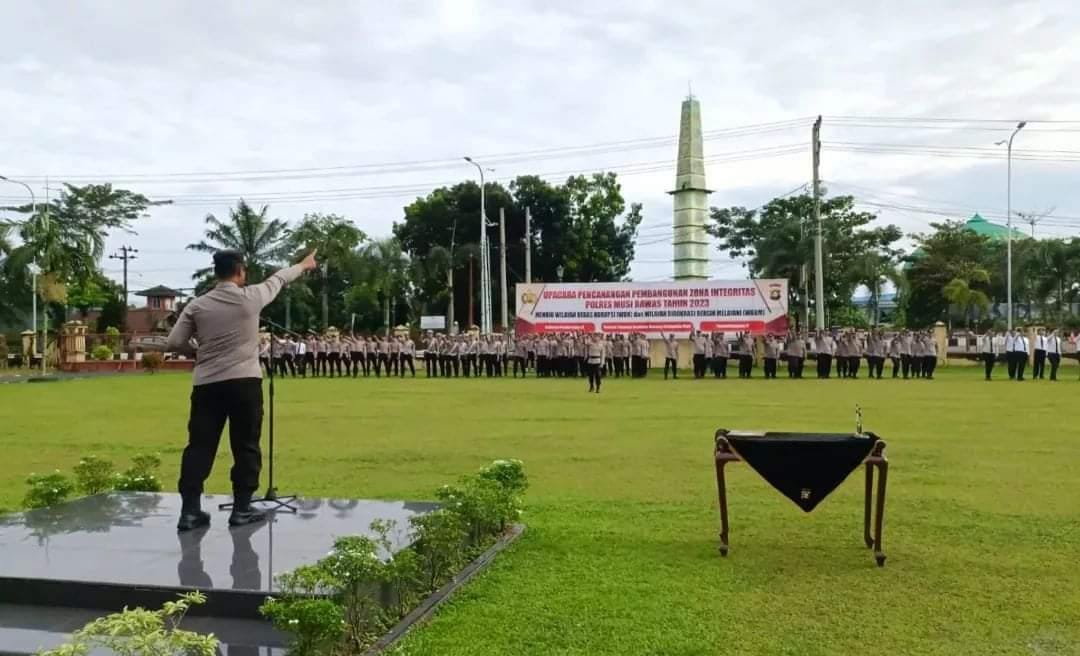 Kapolres Musi Rawas AKBP Danu Agus Purnomo S.IK.M. H selaku Inspektur Upacara memimpin Upacara Pencanangan Zona Integritas tahun 2023 bertema “Menuju Wilayah Bebas Korupsi (WBK) dan Wilayah Birokrasi Bersih Melayani (WBBM)”.